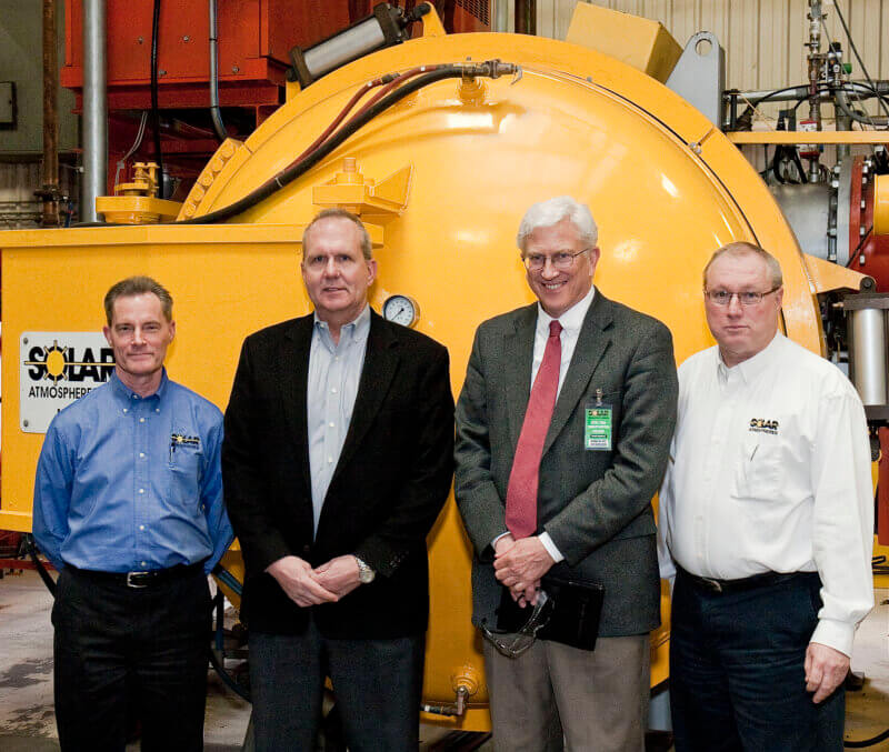 The president of ASM International, Dr. Gernant E. Maurer, FASM, recently toured the Solar Atmospheres heat treating facility in Souderton, PA. Dr. Maurer spent time exploring all aspects of vacuum heat treating, nitriding and vacuum carburizing and marveled at the variety of materials and configurations in various stages of processing. Of particular interest was the state-of-the-art metallurgical lab with new Struers precision cutting, mounting and polishing equipment and cabinetry. Upon entering, Dr. Mauer reminisced about metallurgical sample preparation and examination from an earlier stage in his career. In addition to seeing a variety of vacuum furnaces in operation, Dr. Mauer was also able to get a first-hand look at vacuum furnace assembly and systems integration at sister company Solar Manufacturing. Roger Jones, president of Solar Atmospheres, notes, “We were honored to host Dr. Maurer and give him an in-depth look at our thermal processing operations.”
