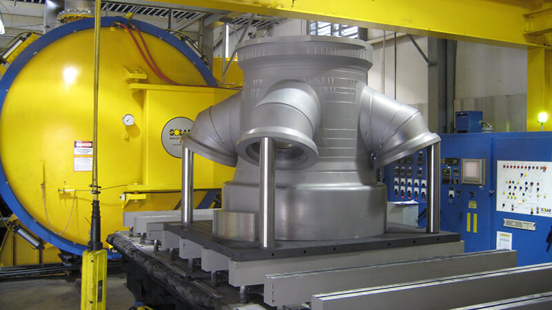 Michael Johnson, Sales Manager stated “The welded component needed to be homogenously treated to insure peak performance in the event the LAS would be needed. Precise temperature monitoring of the part and uniformity of the furnace was the easy part. The challenging part was avoiding a eutectic reaction with the furnace tooling while minimizing distortion. At the end of the day, both Solar and its customer had a process that proved to be successful on the prototype and the three additional manifolds that followed.”